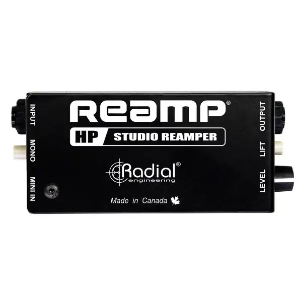 The Radial Engineering Reamp HP takes the signal from a headphone output jack on an audio interface or a mobile device and converts it to feed mono guitar amps and effects pedals for Reamping.